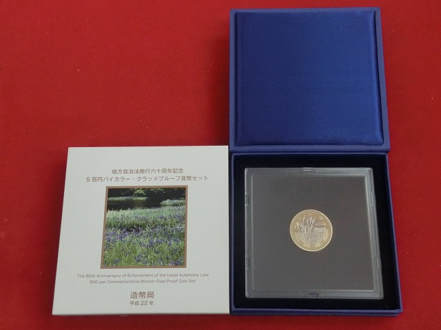 -----------------------商品説明-----------------------■商品 愛知県 500円 バイカラー・クラッド貨幣 プルーフ単体セット ■図柄 〈表〉愛知県庁本庁舎とカキツバタ 〈裏〉古銭のイメージ ■発行年 平成22年 ■発行数 30,000セット ■素材 ニッケル黄銅、白銅及び銅 ■品位 銅750 亜鉛125 ニッケル125 ■量目 7.1g ■直径 26.5mm ■状態 パッと見で綺麗なお品ですが、経年劣化による擦れ傷、ヤケ、シミが多少ある場合があります。 (写真は見本です。実際に発送するものとは異なる場合がございますが、同等品程度の品物を発送します。) ※商品写真はできる限り実物の色に近づけるようしておりますが、 お使いのモニター設定、 お部屋の照明等により実際の商品と色味が異なる場合がございます。 ■地方自治法施行60周年記念貨幣とは 日本において地方自治法施行60周年を記念して発行された記念貨幣です。 1947年(昭和22年)5月3日に施行された地方自治法が60周年を迎えたことを記念し、 2008年(平成20年)以降、47都道府県の図柄を あしらった500円バイカラー・クラッド貨と1000円銀貨を順次発行することが発表された。 これはアメリカ合衆国の50州の図柄をあしらっ た25セント硬貨と類似の企画で、 約10年をかけて毎年数県ずつの硬貨を発行された。 このシリーズは47件94種類と日本の記念貨幣最多のものとなった。 1000円銀貨は都道府県をあしらった図案を採用し、艶消しのプルーフ仕上げを行った上、 彩色されたカラーコインで発行されている。 また額面以上の価格で配布されるプレミアム型貨幣であり、 造幣局に事前に申し込みをした希望者から抽選で購入者を決定して 代金と引換で発送する方法(販売価格には発送費用及び消費税も含まれている)が取られているが、 題材として取り上げられた都道府県の住民には全国よりも2倍の確率で当選できるようになっている。 500円バイカラー・クラッド貨は、額面で金融機関において引き換えがされた。 これとは別に、500円バイカラー・クラッドプルーフ貨は、1000円銀貨同様、発売価格が額面を上回っており、 造幣局に事前申し込みによる抽選により購入者が決定される(通常の貨幣も造幣局で発売されたが、 送料やケースの費用などから額面の倍の価格で発売された)。 なお、額面で交換する500円バイカラー・クラッド貨も同様に 題材として取り上げられた都道府県分の引き換え枚数が他の都道府県より多く割り当てられている。 日本郵政もこの記念貨幣シリーズとの共同企画として、 各都道府県を題材とした80円の記念切手5種類を収めた小型シートを発行した。 この小型シートのデザインのうち1種類は記念貨幣と題材が同じであり図案もほぼ同じで、 他の4種類は対象都道府県の観光地などがデザインされている。 この記念切手をケース入りの記念貨幣と共に特製ケースに組み込んだ貨幣セットが造幣局で販売され、 ケースに貨幣が収められた単体のAセット、Aセット+記念切手入り特製ケースのBセット、 Aセット+記念切手が入っていない特製ケースのCセットの3種類が 500円バイカラー・クラッド貨と1000円銀貨でそれぞれ発売された。 ■偽造防止技術 1000円銀貨 貨幣側面に斜めギザが入っている、 貨幣の模様の圧印と同時に貨幣側面の周囲に斜めギザ加工を施す技術は、 日本の造幣局が独自に開発し た技術で日本、アメリカ、イギリスで特許を得ている。 貨幣裏面を下に向けると大きな雪の結晶部分に地方自治法施行60周年を記念した「60」の文字が 上に向けると47都道府県を示す「47」の文字が浮かび上がる潜像加工が施されている他、微細点加工も施されている。 ■記念貨幣発行の趣旨 平成19年11月20日、東京国際フォーラムにおいて、 天皇皇后両陛下のご臨席を仰ぎ、地方自治法施行60周年記念式典が挙行された。 これに先立つ11月14日、額賀福志郎財務大臣と増田寛也総務大臣が首相官邸で地方自治法施行60周年を記念して、 平成20年より、47都道府県ごとのデザインをあしらった記念貨幣を順次発行することを発表した。 これは、平成19年が、昭和22年5月3日に地方自治法が施行されてから60周年という大きな節目を迎え、 内閣の重要課題として地域活性化への取組みを強化していることから、 新たな地方自治の時代における地域活性化という願いを込めて記念貨幣を発行することが、 通貨の単位及び貨幣の発行等に関する法律第5条に基づく 国家的な記念事業としてふさわしいとされたことによるものである。 ■地方自治法施行60周年記念貨幣の発行に関する会合 11月の発表を受け、記念貨幣の発行の枠組みについて検討をいただくため、 12月18日と1月16日の2回にわたり、 「地方自治法施行60周年記念貨幣の発行に関する会合」(座長:吉野直行慶応義塾大学教授。 以下「記念貨幣会合」が開催された。 記念貨幣会合においては、記念貨幣(切手)発行の考え方、貨幣の種類等、記念貨幣のデザインのイメージ、 デザイン決定プロセス、発行スケジュールなどについて検討が行われた。 ■発行の