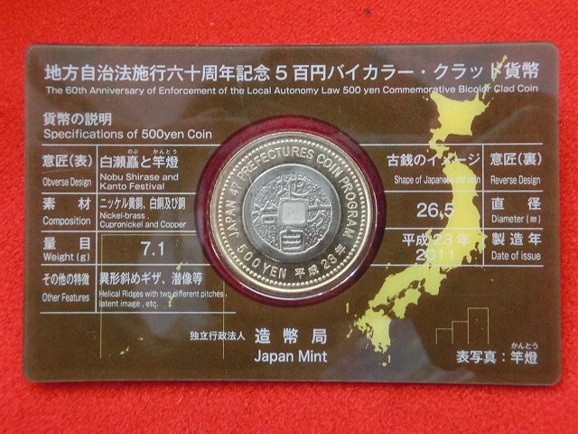 | 秋田県   Aセット  500円  地方自治施行  貨幣セット | ||||