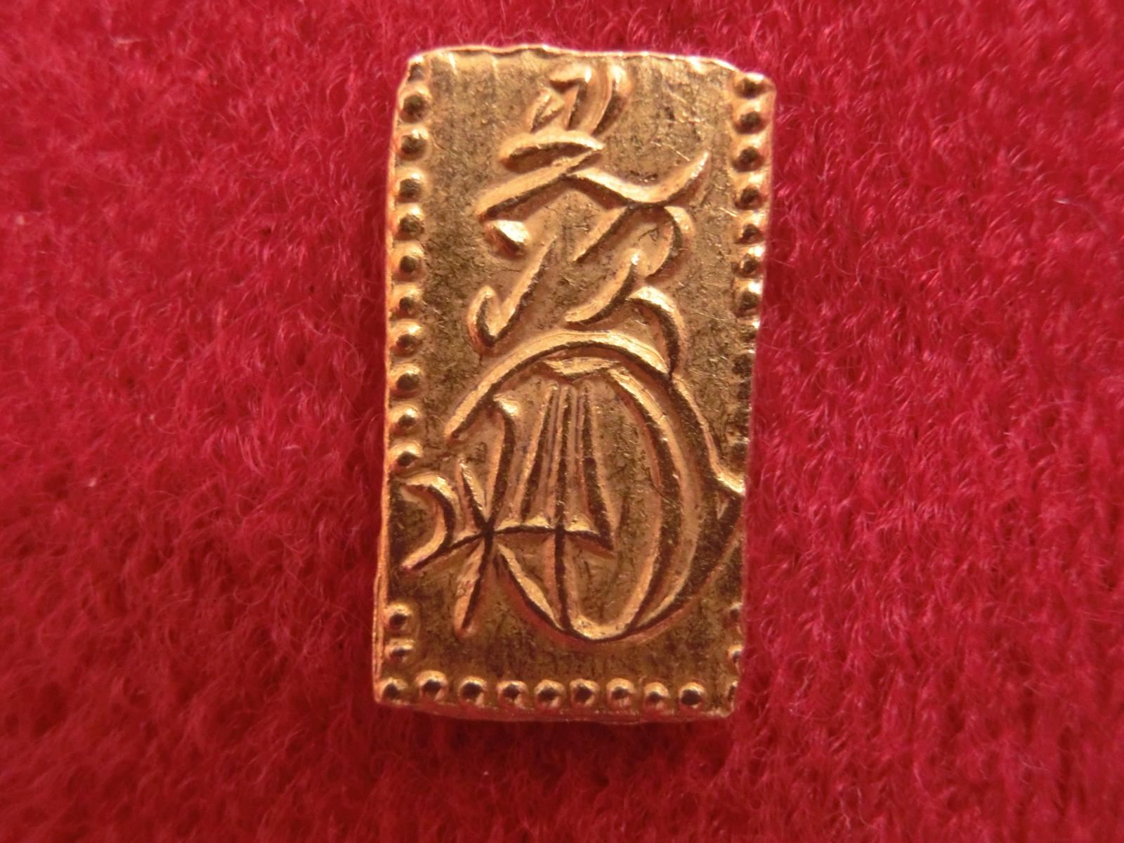-----------------------商品説明-----------------------■品物 万延一分金 ハネ分 ■鋳造機関 万延元年~慶応3年 (1860年~1867年) ■品位 金574 銀426 ■量目 0.8g ■状態 画像をご確認ください。 ■在庫 在庫については、店舗販売もしておりますので、 ご注文頂いた全てをご用意できない場合もございます。 ※カートに在庫がない場合にもお問い合わせいただければご相談をお受けいたします。 ■小判(こばん)とは 小判は、江戸時代に流通した金貨の一種。 金座で用いられた公式な呼称は小判であり『三貨図彙』では「小判」と明記されているが、 『金銀図録』および『大日本貨幣史』などの古銭書には小判金(こばんきん)という名称で収録されており、 貨幣収集界では小判金の名称が広く用いられている。 当時の文書には単に金と記されていることが多く、「金百両」などと表記された。 計数貨幣であるが量目(質量)および金品位が一定に定められており、金含有量が額面を決める秤量貨幣の発展形である。 現代では、共同体が定めた公式な貨幣ではなく、それを模した記念品やメダルを「小判」ということもある。 また、クック諸島は法定通貨として有効な小判を模した金貨・銀貨を発行しており代理店が「小判」として販売している。 当然ながら大判より小さいため小判と呼ばれるが、その大きさは鋳造年代により異なり、 また同種の小判でも手作りのため多少ばらつきがあり、それを示すために「大きな小判」や「小さな小判」という表現がされるが、重言や排反では無い。 ◎概要 形状は、小判形と呼ばれる楕円形で表面には全体的に打目が彫られ、上下に扇枠に囲まれた五三桐(ごさんのきり)、 中央上部に「壹?」(=「一両」)、下部に「光次(花押)」の極印が打たれている。 楕円形、打目、黄金色が米俵の形状、俵目、色彩に由来するとの説が唱えられているが、反論も多くあり、 内部まで金であることを証明するため打ち伸ばした「蛭藻金」や「譲葉金」の形状に起源を持つとか、 打目も内部まで金であることを示すために刻まれたものであるとか、 あるいは金地金を打ち伸ばすときに槌や鏨(たがね)によって不可避的に付く打目であるなどの説もかつては支持された。 一般的に小判は「金貨」とされ純金のように見えるものが多いが、実際は金銀合金である。 外見上、金色に見えるのは、「色揚げ」と称して表面の銀を薬品と共に加熱して塩化銀として取り去る処理を施した結果である。 江戸幕府を開くに先立ち、徳川家康は大判より小型のものとし、 墨書を極印に改め一般流通を想定した通貨を発行する構想を持っており、 慶長6年(1601年)に徳川家康が後藤家に命じて鋳造させた慶長小判を嚆矢とし、万延元年(1860年)発行の万延小判まで10種が発行された。 全国通用を前提とするものであるが、金山が主に常陸、甲斐、伊豆および佐渡などに位置し、 金貨の一般通用は家康により新たに取り入れられた政策であったため主に関東地方を中心に流通した。 ◎小判の量目 額面は金一両。これは本来、質量単位としての一両[注釈 1]の目方の砂金と言う意味であったが、 鎌倉時代には金一両は五匁、銀一両は4.3匁と変化し、 文明16年(1484年)、室町幕府により京目(きょうめ)金一両は4.5匁(約16.8グラム)と公定され、 それ以外のものは田舎目(いなかめ)とされた。 安土桃山時代には四進法の通貨単位の便宜を図るためか、京目金一両は四匁四分と変化し、田舎目金一両は四匁前後となった。 慶長小判はこの京目一両の原則に沿っていたが、 実際の慶長小判の量目は品位52.2匁位であるから金44匁に銀8.2匁を足して52.2匁となり、 金座の鋳造手数料4.4匁を差引くと47.8匁となり吹き減り0.2匁を差引けば10両分の量目が47.6匁になるとされた。 あるいは大判が44匁2分でありこれが8両2分(当時)で取引されているから44匁2分を8.5で割ると10両あたり52匁となるので品位52匁位とし、 大判の重さの1割の鋳造手数料4匁2分2厘を差引くと47匁5分8厘となる。 これに大判の入目2分に順じ2分を足せば10両の量目は47匁6分となるとする説もある。 このように名目上の一両の金平価は金4.4匁(16.4g)であるが、慶長小判でさえ実際の含有金量は4.0匁強と、金平価をやや下回っている。 一両は日常生活では大変高額なものであり、例えば慶長小判一両であれば米3~4石を入手する購買力を持っており、 財布に入れて使用するような性質のものではなく庶民には縁遠い存在であった。 また、小判も丁銀と同様に包封して百両包、五十両包あるいは二十五両包など包金として高額取引や献上・贈答用として用いられ、 流通過程でも敢えて開封されることは殆ど無かった。 特に金座の後藤包が権威あるものとして両替商らが為替金などを幕府に納入する際は後藤包であることが要求された。 包封せず裸のまま献上・贈答用として使用できたのは大判のみであった。 ◎改鋳 後世に金銀産出の衰退、幕府の支出拡大による慢性的な財政難の補填のため、 正徳・享保期を除き、時代ごとに主