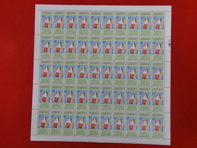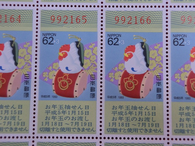 平成5年 62円 50枚シート 太鼓乗にわとり 年賀切手 | ||||