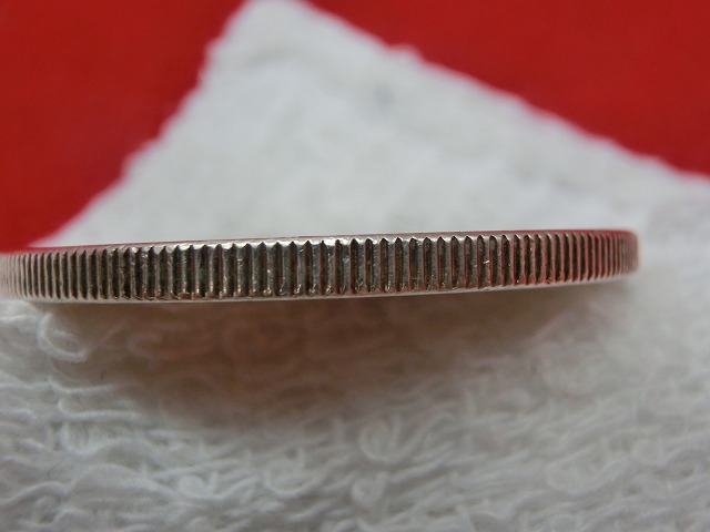 | -----------------------商品説明-----------------------■品物 新1円銀貨 明治25年 円銀 小型 後期 古銭 NO-1012 ■量目(実測値) 26.93g ■品位(実測値) 銀900 ■直径(実測値) 38.1mm ■状態 画像をご確認ください。 ■在庫 在庫については、店舗販売もしておりますので、 ご注文頂いた全てをご用意できない場合もございます。 ※カートに在庫がない場合にもお問い合わせいただければご相談をお受けいたします。 ■発行枚数 明治 3年 3,685,049枚 明治 7年 942,006枚 明治 8年 139,323枚 明治 11年 856,378枚 明治 12年 1,913,318枚 明治 13年 5,247,432枚 明治 14年 2,927,409枚 明治 15年 5,089,064枚 明治 16年 3,636,678枚 明治 17年 3,599,192枚 明治 18年 4,296,620枚 明治 19年 9,084,262枚 明治 20年 8,275,787枚 明治 21年 9,477,414枚 明治 22年 9,295,348枚 明治 23年 7,292,877枚 明治 24年 7,518,021枚 明治 25年 11,187,613枚 明治 26年 10,403,477枚 明治 27年 22,118,416枚 明治 28年 21,098,754枚 明治 29年 11,363,949枚 明治 30年 2,448,694枚 明治 34年 1,256,252枚 明治 35年 668,782枚 明治 36年 5,131,096枚 明治 37年 6,970,843枚 明治 38年 5,031,503枚 明治 39年 3,471,297枚 明治 41年 334,705枚 明治 45年 5,000,000枚 大正 3年 11,500,000枚 ■一円銀貨とは 日本の近代銀貨。「円銀」とも呼ばれる。 1871年(明治4年)の新貨条例により、対外貿易専用銀貨として発行された。1914年(大正3年)まで製造され、 主に台湾や中国で流通した。 品位は銀.900、銅.100、量目は26.96グラム(416グレイン)で大型と小型に大別され、 量目は同じだが直径が異なる。 大型は直径38.6mm小型は38.1mmである。 大型は1887年(明治20年)まで、小型は大型に代わり同1887年から1914年(大正3年)まで製造された。 製造された当時は明治維新後まもなく、造幣技術が確立されていなかったため政府は英国に範を求めたが、 持参した加納夏雄の原図の竜図が絶賛され、日本で製造されることになった。 また1875年より1878年まで、メキシコ銀貨などと量目をあわせ、 同じく貿易専用の「貿易銀」(量目420グレイン)も鋳造された。 1878年(明治11年)からは日本国内でも一円銀貨の流通が認められ、 金準備が不足し名目と化した金本位制下における事実上の本位貨幣となる(金銀複本位制、事実上の銀本位制)。 1885年には一円銀貨との兌換を明記した紙幣(日本銀行兌換銀券)が発行された。 ただし、一円銀貨が日本国内の市場での支払いに用いられることは稀であり、 これに相当する高額の支払いは大半が明治通宝や改造紙幣、日本銀行兌換銀券などといった紙幣によるものであった。 1897年の貨幣法施行による金兌換再開にともない、一円銀貨の金貨との引換と日本での通用停止が決まった。 しかし日清戦争以来、台湾や朝鮮では一円銀貨が盛んに流通していて、すぐに通用停止とすることができず、 当分の間、「丸銀」の極印を「一圓」の文字の左側または右側に打って、外地のみ通用を認めた。 いざ実施してみると、丸銀の極印のあるなしで、通用するしないといった市場の混乱が発生したため、 1897年に発効した丸銀極印打ちは、翌1898年には取りやめになり、その年に一円銀貨の日本内地での流通は禁止された。 しかし日清戦争の結果1897年より日本領となった台湾では一円銀貨の流通が続き、 外地および海外向けの一円銀貨(明治34年銘以降の一円銀貨は日本国内では通用しなかったので、 「円形銀塊」とも呼ばれた)の製造は1914年まで行われた。 ◎収集 一円銀貨は収集家の間で人気があり、価格は手変わりや状態、年号などにより、数千円から数十万円もの大差がある。 近年では台湾や中国から日本に大量に逆輸入されている。 また、今は廃貨となっていて有効な貨幣ではないために贋作の製造・流通自体は犯罪とならず収集家向けの贋作も存在している。 但し贋作と知りながら本物として売ると詐欺罪にあたる。 近年では特別年号(特年、発行枚数の少ない年号)のみならず並年号(並年、発行枚数の多い年号)においても 3Dプリンターで製作されたものなど精巧な贋作が多数出回っており、 中国製のものも多く、中には本物とミクロン単位という顕微鏡レベルの違いしかないものもあり、特に注意が必要とされている。 Wikipediaより転載 ■質・買取屋インターネット店は 松本市,長野市,上田市,佐久市,諏訪市,岡谷市,茅野市,飯田市,伊那市,塩尻市,安曇野市,からはもちろん、 全国(北海道(札幌), 青森, 岩手(盛岡), 宮城(仙台), 秋田, 山形, 福島, 茨城, 栃木, 群馬, 埼玉, 千葉, 東京, 神奈川(横浜), 新潟, 富山, 石川, 福井, 山梨, 長野, 岐阜, 静岡, 愛知(名古屋), 三重, 滋賀, 京都 大阪(大阪駅・難波・梅田), 兵庫, 奈良, 和歌山, 鳥取, 島根, 岡山, 広島, 山口, 徳島, 香川, 愛媛, 高知, 福岡, 佐賀, 長崎, 熊本, 大分, 宮崎, 【古銭/1円銀貨/園銀/円銀/貿易銀/購入/販売/買取/造幣局/記念硬貨/記念コイン/記念貨幣/記念通貨/記念紙幣/古紙幣/古銭/金貨/銀貨/特年/行事用貨幣セット/メダル/銀メダル/金メダル/記念メダル】 | ||||