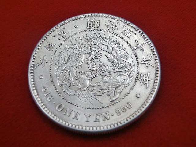 新1円銀貨 明治39年 円銀 小型 古銭 NO-1037 | ||||