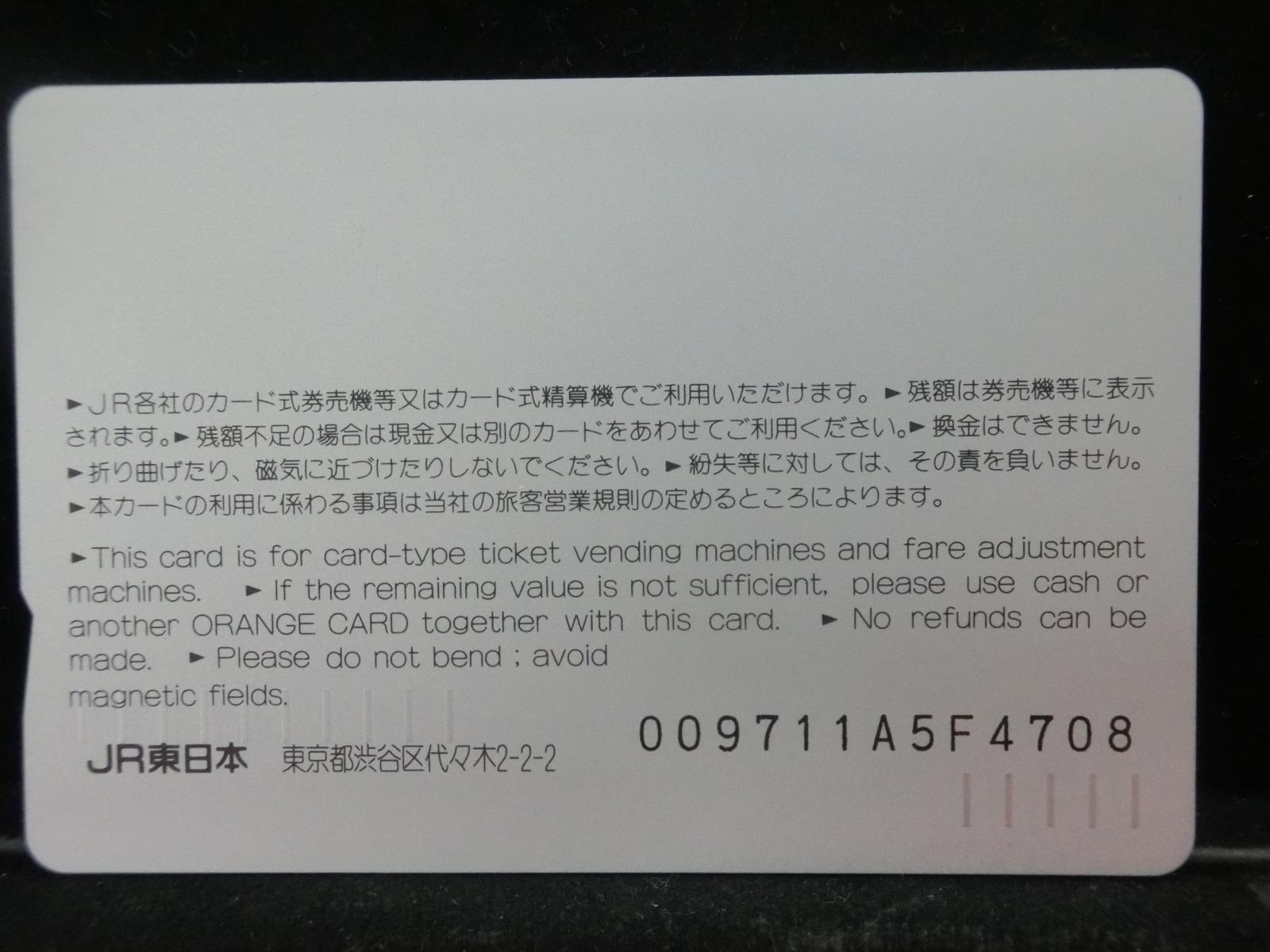 -----------------------商品説明-----------------------■品物 オレンジカード 未使用 ■額面 1000円 ■状態 画像をご確認ください。 ■在庫 在庫については、店舗販売もしておりますので、 ご注文頂いた全てをご用意できない場合もございます。 カートに在庫がない場合にもお問い合わせいただければご相談をお受けいたします。 ■オレンジカードとは JR各社で利用できる磁気式プリペイドカードである。略称でオレカとも呼ばれる。 日本国有鉄道(国鉄)時代の1985年3月25日に関東圏の主要駅で販売が開始されたのち、 全国で発売された。2013年3月31日限りで発売を終了した。 ◎概要 1971年(昭和46年)に研究と開発を開始。マルス105開発や国鉄経営難等もあって開発は数回中断している。 1984年(昭和59年)、JNRカードの開発と同時期に再度開発をスタート。 当時からICカード化にも意欲を見せていたが、この時は断念している。 開発プロジェクトのリーダーは、当初から須田寬(後に常務理事を経てJR東海の初代社長)が担当している。 オレンジカード対応の自動券売機で乗車券(切符)類の購入に利用できる。 また、オレンジカード対応の自動精算機や有人改札の窓口処理機で乗り越し精算にも利用できる。 もっとも、イオカード・Jスルーカード・ワイワイカード(以上いずれも発売終了)のように、 自動改札機に直接投入して自動精算することはできない。 JRの駅のみどりの窓口やカード発売機のほか、一部のデパートで購入することができた。 また、JRの一部特急列車でもオレンジカード発売の案内放送があれば車掌から購入することが可能で、 その中には車内販売限定オリジナルデザインのものもあった。 新幹線のみが停車する山陽新幹線の新神戸駅、北陸新幹線の安中榛名駅や 東北新幹線のいわて沼宮内駅・二戸駅・八戸駅・七戸十和田駅・東海道新幹線の新富士駅、 在来線の無人駅およびみどりの窓口非設置駅では、オレンジカード対応の自動券売機が設置されていないため、 オレンジカードを使用しての乗車券類の購入はできない。 ただし、新幹線のみが停車する軽井沢駅・上田駅・上毛高原駅や、一部のみどりの窓口非設置駅などでは、 オレンジカード対応の自動券売機が設置されている場合がある。 無人駅が多い鶴見線や青梅線の各駅にもオレンジカード対応の自動券売機が設置されていたが、 鶴見線は鶴見駅を除く全駅が2022年2月28日に、 青梅線は一部の駅を除き2017年から2018年にかけて自動券売機が撤去され、利用ができなくなった。 みどりの窓口設置駅でありながら他社管理駅である小諸駅(しなの鉄道管理駅)、 八戸駅(在来線は青い森鉄道管理駅)と自動券売機非設置の左沢駅などでは使用することができない。 オレンジカードで購入した乗車券類は、みどりの窓口[注 2]で乗車変更の取り扱いが可能である。 他の乗車カード類の場合も共通するが、 オレンジカードで他のオレンジカードや他のJRの磁気式乗車カード(イオカード)などを購入したり、 Suica・ICOCA・TOICA・Kitaca・SUGOCAのJRの 非接触型ICカードを購入したりチャージ(現金積み増し)したりすることはできない。 また車内精算で使用することもできない。 以前はクレジットカードでの購入も可能だったが、北海道旅客鉄道(JR北海道)では2003年6月20日から、 東日本旅客鉄道(JR東日本)では2005年ごろから(ビューカードは最後まで購入可能だった)、 JR九州、JR四国、JR西日本も段階的に購入が不可能となった。 これは、クレジットカードを盗んだ者がオレンジカードを購入、 金券ショップで換金することで現金を得るという不正行為を行っており、これを防ぐことが目的であった。 ◎発売終了 JR東日本の首都圏エリアでは1991年3月1日にイオカードが発売開始され、 そして2001年11月18日にSuicaの販売を開始した。 これらのカードは自動券売機で乗車券に引き換えることなくカード自体に対して 自動改札機による改札処理を行うことが可能でありオレンジカードに代わり普及し、 JR東日本ではオレンジカードの売上はピーク時の1991年には327億円あったが、 2006年には13億円に減少した。 また他のJR各社も1990年代以降、自社独自の磁気式ストアードフェアカードやICカードを発売開始している。 JR西日本(西日本旅客鉄道)では、新幹線単独駅に設置されている一部の券売機を除いてオレンジカードが使用可能であり、 在来線扱いの博多南線博多南駅でも使用できる。 ICOCA・Jスルーエリアの小規模の駅で取扱いをやめている。 一部の駅の出札窓口でも専用の処理機を使う事で利用することができた時期もある。 ただし、一部の駅ではオレンジカード対応券売機が設置されていない。 このため、オレンジカード対応の自動券売機が更新されないケースや、 オレンジカードを発売していない駅も出てきている。 しかし、当時ICOCAの導入予定を公式発表していなかった北陸地方と山口県内や山陰地方では、 2008年頃まで記念カードも発行されていた。 また、2011年頃でも、JR北海道[注 3]とJR四国[