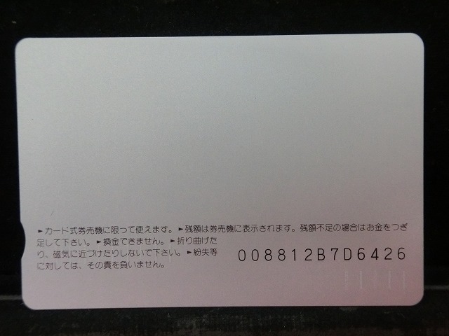 -----------------------商品説明-----------------------■品物 オレンジカード 未使用 ■額面 1000円 ■状態 画像をご確認ください。 ■在庫 在庫については、店舗販売もしておりますので、 ご注文頂いた全てをご用意できない場合もございます。 カートに在庫がない場合にもお問い合わせいただければご相談をお受けいたします。 ■オレンジカードとは JR各社で利用できる磁気式プリペイドカードである。略称でオレカとも呼ばれる。 日本国有鉄道(国鉄)時代の1985年3月25日に関東圏の主要駅で販売が開始されたのち、 全国で発売された。2013年3月31日限りで発売を終了した。 ◎概要 1971年(昭和46年)に研究と開発を開始。マルス105開発や国鉄経営難等もあって開発は数回中断している。 1984年(昭和59年)、JNRカードの開発と同時期に再度開発をスタート。 当時からICカード化にも意欲を見せていたが、この時は断念している。 開発プロジェクトのリーダーは、当初から須田寬(後に常務理事を経てJR東海の初代社長)が担当している。 オレンジカード対応の自動券売機で乗車券(切符)類の購入に利用できる。 また、オレンジカード対応の自動精算機や有人改札の窓口処理機で乗り越し精算にも利用できる。 もっとも、イオカード・Jスルーカード・ワイワイカード(以上いずれも発売終了)のように、 自動改札機に直接投入して自動精算することはできない。 JRの駅のみどりの窓口やカード発売機のほか、一部のデパートで購入することができた。 また、JRの一部特急列車でもオレンジカード発売の案内放送があれば車掌から購入することが可能で、 その中には車内販売限定オリジナルデザインのものもあった。 新幹線のみが停車する山陽新幹線の新神戸駅、北陸新幹線の安中榛名駅や 東北新幹線のいわて沼宮内駅・二戸駅・八戸駅・七戸十和田駅・東海道新幹線の新富士駅、 在来線の無人駅およびみどりの窓口非設置駅では、オレンジカード対応の自動券売機が設置されていないため、 オレンジカードを使用しての乗車券類の購入はできない。 ただし、新幹線のみが停車する軽井沢駅・上田駅・上毛高原駅や、一部のみどりの窓口非設置駅などでは、 オレンジカード対応の自動券売機が設置されている場合がある。 無人駅が多い鶴見線や青梅線の各駅にもオレンジカード対応の自動券売機が設置されていたが、 鶴見線は鶴見駅を除く全駅が2022年2月28日に、 青梅線は一部の駅を除き2017年から2018年にかけて自動券売機が撤去され、利用ができなくなった。 みどりの窓口設置駅でありながら他社管理駅である小諸駅(しなの鉄道管理駅)、 八戸駅(在来線は青い森鉄道管理駅)と自動券売機非設置の左沢駅などでは使用することができない。 オレンジカードで購入した乗車券類は、みどりの窓口[注 2]で乗車変更の取り扱いが可能である。 他の乗車カード類の場合も共通するが、 オレンジカードで他のオレンジカードや他のJRの磁気式乗車カード(イオカード)などを購入したり、 Suica・ICOCA・TOICA・Kitaca・SUGOCAのJRの 非接触型ICカードを購入したりチャージ(現金積み増し)したりすることはできない。 また車内精算で使用することもできない。 以前はクレジットカードでの購入も可能だったが、北海道旅客鉄道(JR北海道)では2003年6月20日から、 東日本旅客鉄道(JR東日本)では2005年ごろから(ビューカードは最後まで購入可能だった)、 JR九州、JR四国、JR西日本も段階的に購入が不可能となった。 これは、クレジットカードを盗んだ者がオレンジカードを購入、 金券ショップで換金することで現金を得るという不正行為を行っており、これを防ぐことが目的であった。 ◎発売終了 JR東日本の首都圏エリアでは1991年3月1日にイオカードが発売開始され、 そして2001年11月18日にSuicaの販売を開始した。 これらのカードは自動券売機で乗車券に引き換えることなくカード自体に対して 自動改札機による改札処理を行うことが可能でありオレンジカードに代わり普及し、 JR東日本ではオレンジカードの売上はピーク時の1991年には327億円あったが、 2006年には13億円に減少した。 また他のJR各社も1990年代以降、自社独自の磁気式ストアードフェアカードやICカードを発売開始している。 JR西日本(西日本旅客鉄道)では、新幹線単独駅に設置されている一部の券売機を除いてオレンジカードが使用可能であり、 在来線扱いの博多南線博多南駅でも使用できる。 ICOCA・Jスルーエリアの小規模の駅で取扱いをやめている。 一部の駅の出札窓口でも専用の処理機を使う事で利用することができた時期もある。 ただし、一部の駅ではオレンジカード対応券売機が設置されていない。 このため、オレンジカード対応の自動券売機が更新されないケースや、 オレンジカードを発売していない駅も出てきている。 しかし、当時ICOCAの導入予定を公式発表していなかった北陸地方と山口県内や山陰地方では、 2008年頃まで記念カードも発行されていた。 また、2011年頃でも、JR北海道[注 3]とJR四国[
