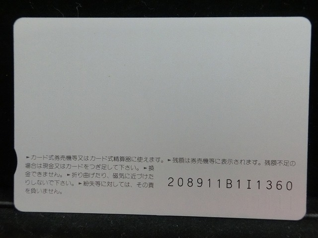 -----------------------商品説明-----------------------■品物 オレンジカード 未使用 ■額面 1000円 ■状態 画像をご確認ください。 ■在庫 在庫については、店舗販売もしておりますので、 ご注文頂いた全てをご用意できない場合もございます。 カートに在庫がない場合にもお問い合わせいただければご相談をお受けいたします。 ■オレンジカードとは JR各社で利用できる磁気式プリペイドカードである。略称でオレカとも呼ばれる。 日本国有鉄道(国鉄)時代の1985年3月25日に関東圏の主要駅で販売が開始されたのち、 全国で発売された。2013年3月31日限りで発売を終了した。 ◎概要 1971年(昭和46年)に研究と開発を開始。マルス105開発や国鉄経営難等もあって開発は数回中断している。 1984年(昭和59年)、JNRカードの開発と同時期に再度開発をスタート。 当時からICカード化にも意欲を見せていたが、この時は断念している。 開発プロジェクトのリーダーは、当初から須田寬(後に常務理事を経てJR東海の初代社長)が担当している。 オレンジカード対応の自動券売機で乗車券(切符)類の購入に利用できる。 また、オレンジカード対応の自動精算機や有人改札の窓口処理機で乗り越し精算にも利用できる。 もっとも、イオカード・Jスルーカード・ワイワイカード(以上いずれも発売終了)のように、 自動改札機に直接投入して自動精算することはできない。 JRの駅のみどりの窓口やカード発売機のほか、一部のデパートで購入することができた。 また、JRの一部特急列車でもオレンジカード発売の案内放送があれば車掌から購入することが可能で、 その中には車内販売限定オリジナルデザインのものもあった。 新幹線のみが停車する山陽新幹線の新神戸駅、北陸新幹線の安中榛名駅や 東北新幹線のいわて沼宮内駅・二戸駅・八戸駅・七戸十和田駅・東海道新幹線の新富士駅、 在来線の無人駅およびみどりの窓口非設置駅では、オレンジカード対応の自動券売機が設置されていないため、 オレンジカードを使用しての乗車券類の購入はできない。 ただし、新幹線のみが停車する軽井沢駅・上田駅・上毛高原駅や、一部のみどりの窓口非設置駅などでは、 オレンジカード対応の自動券売機が設置されている場合がある。 無人駅が多い鶴見線や青梅線の各駅にもオレンジカード対応の自動券売機が設置されていたが、 鶴見線は鶴見駅を除く全駅が2022年2月28日に、 青梅線は一部の駅を除き2017年から2018年にかけて自動券売機が撤去され、利用ができなくなった。 みどりの窓口設置駅でありながら他社管理駅である小諸駅(しなの鉄道管理駅)、 八戸駅(在来線は青い森鉄道管理駅)と自動券売機非設置の左沢駅などでは使用することができない。 オレンジカードで購入した乗車券類は、みどりの窓口[注 2]で乗車変更の取り扱いが可能である。 他の乗車カード類の場合も共通するが、 オレンジカードで他のオレンジカードや他のJRの磁気式乗車カード(イオカード)などを購入したり、 Suica・ICOCA・TOICA・Kitaca・SUGOCAのJRの 非接触型ICカードを購入したりチャージ(現金積み増し)したりすることはできない。 また車内精算で使用することもできない。 以前はクレジットカードでの購入も可能だったが、北海道旅客鉄道(JR北海道)では2003年6月20日から、 東日本旅客鉄道(JR東日本)では2005年ごろから(ビューカードは最後まで購入可能だった)、 JR九州、JR四国、JR西日本も段階的に購入が不可能となった。 これは、クレジットカードを盗んだ者がオレンジカードを購入、 金券ショップで換金することで現金を得るという不正行為を行っており、これを防ぐことが目的であった。 ◎発売終了 JR東日本の首都圏エリアでは1991年3月1日にイオカードが発売開始され、 そして2001年11月18日にSuicaの販売を開始した。 これらのカードは自動券売機で乗車券に引き換えることなくカード自体に対して 自動改札機による改札処理を行うことが可能でありオレンジカードに代わり普及し、 JR東日本ではオレンジカードの売上はピーク時の1991年には327億円あったが、 2006年には13億円に減少した。 また他のJR各社も1990年代以降、自社独自の磁気式ストアードフェアカードやICカードを発売開始している。 JR西日本(西日本旅客鉄道)では、新幹線単独駅に設置されている一部の券売機を除いてオレンジカードが使用可能であり、 在来線扱いの博多南線博多南駅でも使用できる。 ICOCA・Jスルーエリアの小規模の駅で取扱いをやめている。 一部の駅の出札窓口でも専用の処理機を使う事で利用することができた時期もある。 ただし、一部の駅ではオレンジカード対応券売機が設置されていない。 このため、オレンジカード対応の自動券売機が更新されないケースや、 オレンジカードを発売していない駅も出てきている。 しかし、当時ICOCAの導入予定を公式発表していなかった北陸地方と山口県内や山陰地方では、 2008年頃まで記念カードも発行されていた。 また、2011年頃でも、JR北海道[注 3]とJR四国[