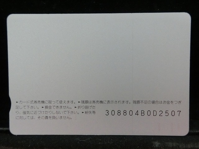 -----------------------商品説明-----------------------■品物 オレンジカード 未使用 ■額面 1000円 ■状態 画像をご確認ください。 ■在庫 在庫については、店舗販売もしておりますので、 ご注文頂いた全てをご用意できない場合もございます。 カートに在庫がない場合にもお問い合わせいただければご相談をお受けいたします。 ■オレンジカードとは JR各社で利用できる磁気式プリペイドカードである。略称でオレカとも呼ばれる。 日本国有鉄道(国鉄)時代の1985年3月25日に関東圏の主要駅で販売が開始されたのち、 全国で発売された。2013年3月31日限りで発売を終了した。 ◎概要 1971年(昭和46年)に研究と開発を開始。マルス105開発や国鉄経営難等もあって開発は数回中断している。 1984年(昭和59年)、JNRカードの開発と同時期に再度開発をスタート。 当時からICカード化にも意欲を見せていたが、この時は断念している。 開発プロジェクトのリーダーは、当初から須田寬(後に常務理事を経てJR東海の初代社長)が担当している。 オレンジカード対応の自動券売機で乗車券(切符)類の購入に利用できる。 また、オレンジカード対応の自動精算機や有人改札の窓口処理機で乗り越し精算にも利用できる。 もっとも、イオカード・Jスルーカード・ワイワイカード(以上いずれも発売終了)のように、 自動改札機に直接投入して自動精算することはできない。 JRの駅のみどりの窓口やカード発売機のほか、一部のデパートで購入することができた。 また、JRの一部特急列車でもオレンジカード発売の案内放送があれば車掌から購入することが可能で、 その中には車内販売限定オリジナルデザインのものもあった。 新幹線のみが停車する山陽新幹線の新神戸駅、北陸新幹線の安中榛名駅や 東北新幹線のいわて沼宮内駅・二戸駅・八戸駅・七戸十和田駅・東海道新幹線の新富士駅、 在来線の無人駅およびみどりの窓口非設置駅では、オレンジカード対応の自動券売機が設置されていないため、 オレンジカードを使用しての乗車券類の購入はできない。 ただし、新幹線のみが停車する軽井沢駅・上田駅・上毛高原駅や、一部のみどりの窓口非設置駅などでは、 オレンジカード対応の自動券売機が設置されている場合がある。 無人駅が多い鶴見線や青梅線の各駅にもオレンジカード対応の自動券売機が設置されていたが、 鶴見線は鶴見駅を除く全駅が2022年2月28日に、 青梅線は一部の駅を除き2017年から2018年にかけて自動券売機が撤去され、利用ができなくなった。 みどりの窓口設置駅でありながら他社管理駅である小諸駅(しなの鉄道管理駅)、 八戸駅(在来線は青い森鉄道管理駅)と自動券売機非設置の左沢駅などでは使用することができない。 オレンジカードで購入した乗車券類は、みどりの窓口[注 2]で乗車変更の取り扱いが可能である。 他の乗車カード類の場合も共通するが、 オレンジカードで他のオレンジカードや他のJRの磁気式乗車カード(イオカード)などを購入したり、 Suica・ICOCA・TOICA・Kitaca・SUGOCAのJRの 非接触型ICカードを購入したりチャージ(現金積み増し)したりすることはできない。 また車内精算で使用することもできない。 以前はクレジットカードでの購入も可能だったが、北海道旅客鉄道(JR北海道)では2003年6月20日から、 東日本旅客鉄道(JR東日本)では2005年ごろから(ビューカードは最後まで購入可能だった)、 JR九州、JR四国、JR西日本も段階的に購入が不可能となった。 これは、クレジットカードを盗んだ者がオレンジカードを購入、 金券ショップで換金することで現金を得るという不正行為を行っており、これを防ぐことが目的であった。 ◎発売終了 JR東日本の首都圏エリアでは1991年3月1日にイオカードが発売開始され、 そして2001年11月18日にSuicaの販売を開始した。 これらのカードは自動券売機で乗車券に引き換えることなくカード自体に対して 自動改札機による改札処理を行うことが可能でありオレンジカードに代わり普及し、 JR東日本ではオレンジカードの売上はピーク時の1991年には327億円あったが、 2006年には13億円に減少した。 また他のJR各社も1990年代以降、自社独自の磁気式ストアードフェアカードやICカードを発売開始している。 JR西日本(西日本旅客鉄道)では、新幹線単独駅に設置されている一部の券売機を除いてオレンジカードが使用可能であり、 在来線扱いの博多南線博多南駅でも使用できる。 ICOCA・Jスルーエリアの小規模の駅で取扱いをやめている。 一部の駅の出札窓口でも専用の処理機を使う事で利用することができた時期もある。 ただし、一部の駅ではオレンジカード対応券売機が設置されていない。 このため、オレンジカード対応の自動券売機が更新されないケースや、 オレンジカードを発売していない駅も出てきている。 しかし、当時ICOCAの導入予定を公式発表していなかった北陸地方と山口県内や山陰地方では、 2008年頃まで記念カードも発行されていた。 また、2011年頃でも、JR北海道[注 3]とJR四国[