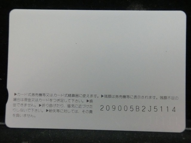 -----------------------商品説明-----------------------■品物 オレンジカード 未使用 ■額面 1000円 ■状態 画像をご確認ください。 ■在庫 在庫については、店舗販売もしておりますので、 ご注文頂いた全てをご用意できない場合もございます。 カートに在庫がない場合にもお問い合わせいただければご相談をお受けいたします。 ■オレンジカードとは JR各社で利用できる磁気式プリペイドカードである。略称でオレカとも呼ばれる。 日本国有鉄道(国鉄)時代の1985年3月25日に関東圏の主要駅で販売が開始されたのち、 全国で発売された。2013年3月31日限りで発売を終了した。 ◎概要 1971年(昭和46年)に研究と開発を開始。マルス105開発や国鉄経営難等もあって開発は数回中断している。 1984年(昭和59年)、JNRカードの開発と同時期に再度開発をスタート。 当時からICカード化にも意欲を見せていたが、この時は断念している。 開発プロジェクトのリーダーは、当初から須田寬(後に常務理事を経てJR東海の初代社長)が担当している。 オレンジカード対応の自動券売機で乗車券(切符)類の購入に利用できる。 また、オレンジカード対応の自動精算機や有人改札の窓口処理機で乗り越し精算にも利用できる。 もっとも、イオカード・Jスルーカード・ワイワイカード(以上いずれも発売終了)のように、 自動改札機に直接投入して自動精算することはできない。 JRの駅のみどりの窓口やカード発売機のほか、一部のデパートで購入することができた。 また、JRの一部特急列車でもオレンジカード発売の案内放送があれば車掌から購入することが可能で、 その中には車内販売限定オリジナルデザインのものもあった。 新幹線のみが停車する山陽新幹線の新神戸駅、北陸新幹線の安中榛名駅や 東北新幹線のいわて沼宮内駅・二戸駅・八戸駅・七戸十和田駅・東海道新幹線の新富士駅、 在来線の無人駅およびみどりの窓口非設置駅では、オレンジカード対応の自動券売機が設置されていないため、 オレンジカードを使用しての乗車券類の購入はできない。 ただし、新幹線のみが停車する軽井沢駅・上田駅・上毛高原駅や、一部のみどりの窓口非設置駅などでは、 オレンジカード対応の自動券売機が設置されている場合がある。 無人駅が多い鶴見線や青梅線の各駅にもオレンジカード対応の自動券売機が設置されていたが、 鶴見線は鶴見駅を除く全駅が2022年2月28日に、 青梅線は一部の駅を除き2017年から2018年にかけて自動券売機が撤去され、利用ができなくなった。 みどりの窓口設置駅でありながら他社管理駅である小諸駅(しなの鉄道管理駅)、 八戸駅(在来線は青い森鉄道管理駅)と自動券売機非設置の左沢駅などでは使用することができない。 オレンジカードで購入した乗車券類は、みどりの窓口[注 2]で乗車変更の取り扱いが可能である。 他の乗車カード類の場合も共通するが、 オレンジカードで他のオレンジカードや他のJRの磁気式乗車カード(イオカード)などを購入したり、 Suica・ICOCA・TOICA・Kitaca・SUGOCAのJRの 非接触型ICカードを購入したりチャージ(現金積み増し)したりすることはできない。 また車内精算で使用することもできない。 以前はクレジットカードでの購入も可能だったが、北海道旅客鉄道(JR北海道)では2003年6月20日から、 東日本旅客鉄道(JR東日本)では2005年ごろから(ビューカードは最後まで購入可能だった)、 JR九州、JR四国、JR西日本も段階的に購入が不可能となった。 これは、クレジットカードを盗んだ者がオレンジカードを購入、 金券ショップで換金することで現金を得るという不正行為を行っており、これを防ぐことが目的であった。 ◎発売終了 JR東日本の首都圏エリアでは1991年3月1日にイオカードが発売開始され、 そして2001年11月18日にSuicaの販売を開始した。 これらのカードは自動券売機で乗車券に引き換えることなくカード自体に対して 自動改札機による改札処理を行うことが可能でありオレンジカードに代わり普及し、 JR東日本ではオレンジカードの売上はピーク時の1991年には327億円あったが、 2006年には13億円に減少した。 また他のJR各社も1990年代以降、自社独自の磁気式ストアードフェアカードやICカードを発売開始している。 JR西日本(西日本旅客鉄道)では、新幹線単独駅に設置されている一部の券売機を除いてオレンジカードが使用可能であり、 在来線扱いの博多南線博多南駅でも使用できる。 ICOCA・Jスルーエリアの小規模の駅で取扱いをやめている。 一部の駅の出札窓口でも専用の処理機を使う事で利用することができた時期もある。 ただし、一部の駅ではオレンジカード対応券売機が設置されていない。 このため、オレンジカード対応の自動券売機が更新されないケースや、 オレンジカードを発売していない駅も出てきている。 しかし、当時ICOCAの導入予定を公式発表していなかった北陸地方と山口県内や山陰地方では、 2008年頃まで記念カードも発行されていた。 また、2011年頃でも、JR北海道[注 3]とJR四国[