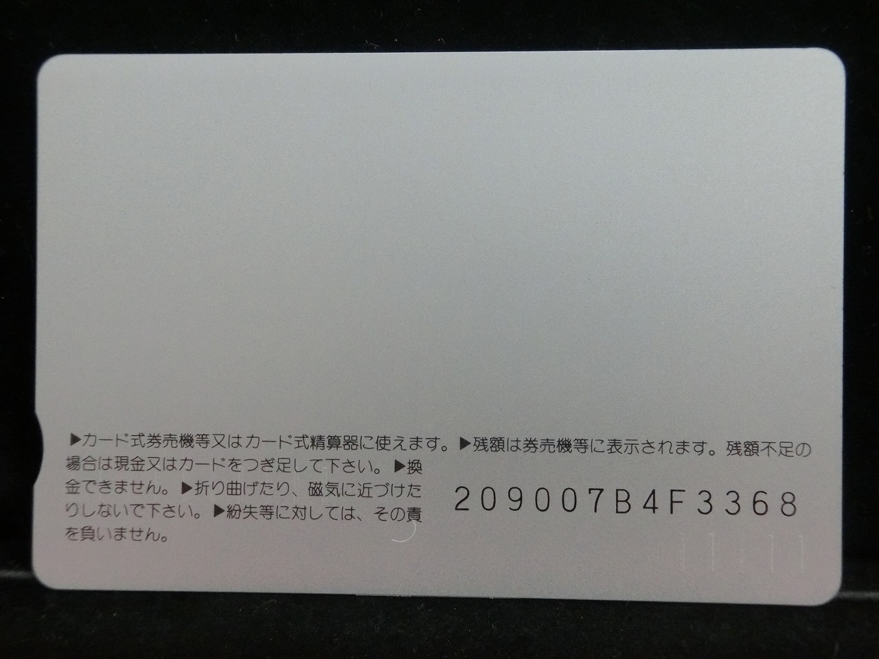 -----------------------商品説明-----------------------■品物 オレンジカード 未使用 ■額面 1000円 ■状態 画像をご確認ください。 ■在庫 在庫については、店舗販売もしておりますので、 ご注文頂いた全てをご用意できない場合もございます。 カートに在庫がない場合にもお問い合わせいただければご相談をお受けいたします。 ■オレンジカードとは JR各社で利用できる磁気式プリペイドカードである。略称でオレカとも呼ばれる。 日本国有鉄道(国鉄)時代の1985年3月25日に関東圏の主要駅で販売が開始されたのち、 全国で発売された。2013年3月31日限りで発売を終了した。 ◎概要 1971年(昭和46年)に研究と開発を開始。マルス105開発や国鉄経営難等もあって開発は数回中断している。 1984年(昭和59年)、JNRカードの開発と同時期に再度開発をスタート。 当時からICカード化にも意欲を見せていたが、この時は断念している。 開発プロジェクトのリーダーは、当初から須田寬(後に常務理事を経てJR東海の初代社長)が担当している。 オレンジカード対応の自動券売機で乗車券(切符)類の購入に利用できる。 また、オレンジカード対応の自動精算機や有人改札の窓口処理機で乗り越し精算にも利用できる。 もっとも、イオカード・Jスルーカード・ワイワイカード(以上いずれも発売終了)のように、 自動改札機に直接投入して自動精算することはできない。 JRの駅のみどりの窓口やカード発売機のほか、一部のデパートで購入することができた。 また、JRの一部特急列車でもオレンジカード発売の案内放送があれば車掌から購入することが可能で、 その中には車内販売限定オリジナルデザインのものもあった。 新幹線のみが停車する山陽新幹線の新神戸駅、北陸新幹線の安中榛名駅や 東北新幹線のいわて沼宮内駅・二戸駅・八戸駅・七戸十和田駅・東海道新幹線の新富士駅、 在来線の無人駅およびみどりの窓口非設置駅では、オレンジカード対応の自動券売機が設置されていないため、 オレンジカードを使用しての乗車券類の購入はできない。 ただし、新幹線のみが停車する軽井沢駅・上田駅・上毛高原駅や、一部のみどりの窓口非設置駅などでは、 オレンジカード対応の自動券売機が設置されている場合がある。 無人駅が多い鶴見線や青梅線の各駅にもオレンジカード対応の自動券売機が設置されていたが、 鶴見線は鶴見駅を除く全駅が2022年2月28日に、 青梅線は一部の駅を除き2017年から2018年にかけて自動券売機が撤去され、利用ができなくなった。 みどりの窓口設置駅でありながら他社管理駅である小諸駅(しなの鉄道管理駅)、 八戸駅(在来線は青い森鉄道管理駅)と自動券売機非設置の左沢駅などでは使用することができない。 オレンジカードで購入した乗車券類は、みどりの窓口[注 2]で乗車変更の取り扱いが可能である。 他の乗車カード類の場合も共通するが、 オレンジカードで他のオレンジカードや他のJRの磁気式乗車カード(イオカード)などを購入したり、 Suica・ICOCA・TOICA・Kitaca・SUGOCAのJRの 非接触型ICカードを購入したりチャージ(現金積み増し)したりすることはできない。 また車内精算で使用することもできない。 以前はクレジットカードでの購入も可能だったが、北海道旅客鉄道(JR北海道)では2003年6月20日から、 東日本旅客鉄道(JR東日本)では2005年ごろから(ビューカードは最後まで購入可能だった)、 JR九州、JR四国、JR西日本も段階的に購入が不可能となった。 これは、クレジットカードを盗んだ者がオレンジカードを購入、 金券ショップで換金することで現金を得るという不正行為を行っており、これを防ぐことが目的であった。 ◎発売終了 JR東日本の首都圏エリアでは1991年3月1日にイオカードが発売開始され、 そして2001年11月18日にSuicaの販売を開始した。 これらのカードは自動券売機で乗車券に引き換えることなくカード自体に対して 自動改札機による改札処理を行うことが可能でありオレンジカードに代わり普及し、 JR東日本ではオレンジカードの売上はピーク時の1991年には327億円あったが、 2006年には13億円に減少した。 また他のJR各社も1990年代以降、自社独自の磁気式ストアードフェアカードやICカードを発売開始している。 JR西日本(西日本旅客鉄道)では、新幹線単独駅に設置されている一部の券売機を除いてオレンジカードが使用可能であり、 在来線扱いの博多南線博多南駅でも使用できる。 ICOCA・Jスルーエリアの小規模の駅で取扱いをやめている。 一部の駅の出札窓口でも専用の処理機を使う事で利用することができた時期もある。 ただし、一部の駅ではオレンジカード対応券売機が設置されていない。 このため、オレンジカード対応の自動券売機が更新されないケースや、 オレンジカードを発売していない駅も出てきている。 しかし、当時ICOCAの導入予定を公式発表していなかった北陸地方と山口県内や山陰地方では、 2008年頃まで記念カードも発行されていた。 また、2011年頃でも、JR北海道[注 3]とJR四国[