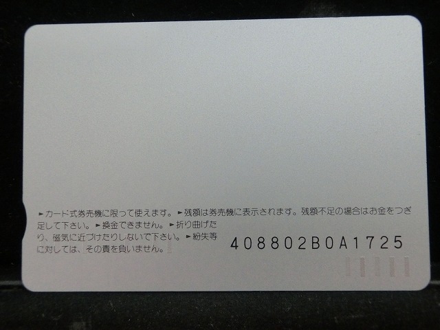 -----------------------商品説明-----------------------■品物 オレンジカード 未使用 ■額面 1000円 ■状態 画像をご確認ください。 ■在庫 在庫については、店舗販売もしておりますので、 ご注文頂いた全てをご用意できない場合もございます。 カートに在庫がない場合にもお問い合わせいただければご相談をお受けいたします。 ■オレンジカードとは JR各社で利用できる磁気式プリペイドカードである。略称でオレカとも呼ばれる。 日本国有鉄道(国鉄)時代の1985年3月25日に関東圏の主要駅で販売が開始されたのち、 全国で発売された。2013年3月31日限りで発売を終了した。 ◎概要 1971年(昭和46年)に研究と開発を開始。マルス105開発や国鉄経営難等もあって開発は数回中断している。 1984年(昭和59年)、JNRカードの開発と同時期に再度開発をスタート。 当時からICカード化にも意欲を見せていたが、この時は断念している。 開発プロジェクトのリーダーは、当初から須田寬(後に常務理事を経てJR東海の初代社長)が担当している。 オレンジカード対応の自動券売機で乗車券(切符)類の購入に利用できる。 また、オレンジカード対応の自動精算機や有人改札の窓口処理機で乗り越し精算にも利用できる。 もっとも、イオカード・Jスルーカード・ワイワイカード(以上いずれも発売終了)のように、 自動改札機に直接投入して自動精算することはできない。 JRの駅のみどりの窓口やカード発売機のほか、一部のデパートで購入することができた。 また、JRの一部特急列車でもオレンジカード発売の案内放送があれば車掌から購入することが可能で、 その中には車内販売限定オリジナルデザインのものもあった。 新幹線のみが停車する山陽新幹線の新神戸駅、北陸新幹線の安中榛名駅や 東北新幹線のいわて沼宮内駅・二戸駅・八戸駅・七戸十和田駅・東海道新幹線の新富士駅、 在来線の無人駅およびみどりの窓口非設置駅では、オレンジカード対応の自動券売機が設置されていないため、 オレンジカードを使用しての乗車券類の購入はできない。 ただし、新幹線のみが停車する軽井沢駅・上田駅・上毛高原駅や、一部のみどりの窓口非設置駅などでは、 オレンジカード対応の自動券売機が設置されている場合がある。 無人駅が多い鶴見線や青梅線の各駅にもオレンジカード対応の自動券売機が設置されていたが、 鶴見線は鶴見駅を除く全駅が2022年2月28日に、 青梅線は一部の駅を除き2017年から2018年にかけて自動券売機が撤去され、利用ができなくなった。 みどりの窓口設置駅でありながら他社管理駅である小諸駅(しなの鉄道管理駅)、 八戸駅(在来線は青い森鉄道管理駅)と自動券売機非設置の左沢駅などでは使用することができない。 オレンジカードで購入した乗車券類は、みどりの窓口[注 2]で乗車変更の取り扱いが可能である。 他の乗車カード類の場合も共通するが、 オレンジカードで他のオレンジカードや他のJRの磁気式乗車カード(イオカード)などを購入したり、 Suica・ICOCA・TOICA・Kitaca・SUGOCAのJRの 非接触型ICカードを購入したりチャージ(現金積み増し)したりすることはできない。 また車内精算で使用することもできない。 以前はクレジットカードでの購入も可能だったが、北海道旅客鉄道(JR北海道)では2003年6月20日から、 東日本旅客鉄道(JR東日本)では2005年ごろから(ビューカードは最後まで購入可能だった)、 JR九州、JR四国、JR西日本も段階的に購入が不可能となった。 これは、クレジットカードを盗んだ者がオレンジカードを購入、 金券ショップで換金することで現金を得るという不正行為を行っており、これを防ぐことが目的であった。 ◎発売終了 JR東日本の首都圏エリアでは1991年3月1日にイオカードが発売開始され、 そして2001年11月18日にSuicaの販売を開始した。 これらのカードは自動券売機で乗車券に引き換えることなくカード自体に対して 自動改札機による改札処理を行うことが可能でありオレンジカードに代わり普及し、 JR東日本ではオレンジカードの売上はピーク時の1991年には327億円あったが、 2006年には13億円に減少した。 また他のJR各社も1990年代以降、自社独自の磁気式ストアードフェアカードやICカードを発売開始している。 JR西日本(西日本旅客鉄道)では、新幹線単独駅に設置されている一部の券売機を除いてオレンジカードが使用可能であり、 在来線扱いの博多南線博多南駅でも使用できる。 ICOCA・Jスルーエリアの小規模の駅で取扱いをやめている。 一部の駅の出札窓口でも専用の処理機を使う事で利用することができた時期もある。 ただし、一部の駅ではオレンジカード対応券売機が設置されていない。 このため、オレンジカード対応の自動券売機が更新されないケースや、 オレンジカードを発売していない駅も出てきている。 しかし、当時ICOCAの導入予定を公式発表していなかった北陸地方と山口県内や山陰地方では、 2008年頃まで記念カードも発行されていた。 また、2011年頃でも、JR北海道[注 3]とJR四国[