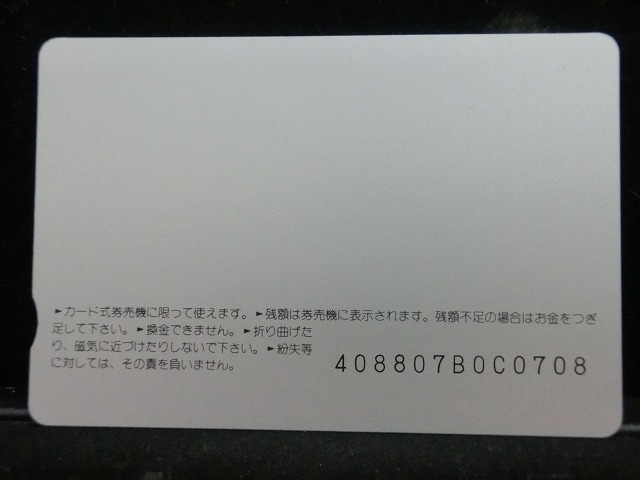-----------------------商品説明-----------------------■品物 オレンジカード 未使用 ■額面 1000円 ■状態 画像をご確認ください。 ■在庫 在庫については、店舗販売もしておりますので、 ご注文頂いた全てをご用意できない場合もございます。 カートに在庫がない場合にもお問い合わせいただければご相談をお受けいたします。 ■オレンジカードとは JR各社で利用できる磁気式プリペイドカードである。略称でオレカとも呼ばれる。 日本国有鉄道(国鉄)時代の1985年3月25日に関東圏の主要駅で販売が開始されたのち、 全国で発売された。2013年3月31日限りで発売を終了した。 ◎概要 1971年(昭和46年)に研究と開発を開始。マルス105開発や国鉄経営難等もあって開発は数回中断している。 1984年(昭和59年)、JNRカードの開発と同時期に再度開発をスタート。 当時からICカード化にも意欲を見せていたが、この時は断念している。 開発プロジェクトのリーダーは、当初から須田寬(後に常務理事を経てJR東海の初代社長)が担当している。 オレンジカード対応の自動券売機で乗車券(切符)類の購入に利用できる。 また、オレンジカード対応の自動精算機や有人改札の窓口処理機で乗り越し精算にも利用できる。 もっとも、イオカード・Jスルーカード・ワイワイカード(以上いずれも発売終了)のように、 自動改札機に直接投入して自動精算することはできない。 JRの駅のみどりの窓口やカード発売機のほか、一部のデパートで購入することができた。 また、JRの一部特急列車でもオレンジカード発売の案内放送があれば車掌から購入することが可能で、 その中には車内販売限定オリジナルデザインのものもあった。 新幹線のみが停車する山陽新幹線の新神戸駅、北陸新幹線の安中榛名駅や 東北新幹線のいわて沼宮内駅・二戸駅・八戸駅・七戸十和田駅・東海道新幹線の新富士駅、 在来線の無人駅およびみどりの窓口非設置駅では、オレンジカード対応の自動券売機が設置されていないため、 オレンジカードを使用しての乗車券類の購入はできない。 ただし、新幹線のみが停車する軽井沢駅・上田駅・上毛高原駅や、一部のみどりの窓口非設置駅などでは、 オレンジカード対応の自動券売機が設置されている場合がある。 無人駅が多い鶴見線や青梅線の各駅にもオレンジカード対応の自動券売機が設置されていたが、 鶴見線は鶴見駅を除く全駅が2022年2月28日に、 青梅線は一部の駅を除き2017年から2018年にかけて自動券売機が撤去され、利用ができなくなった。 みどりの窓口設置駅でありながら他社管理駅である小諸駅(しなの鉄道管理駅)、 八戸駅(在来線は青い森鉄道管理駅)と自動券売機非設置の左沢駅などでは使用することができない。 オレンジカードで購入した乗車券類は、みどりの窓口[注 2]で乗車変更の取り扱いが可能である。 他の乗車カード類の場合も共通するが、 オレンジカードで他のオレンジカードや他のJRの磁気式乗車カード(イオカード)などを購入したり、 Suica・ICOCA・TOICA・Kitaca・SUGOCAのJRの 非接触型ICカードを購入したりチャージ(現金積み増し)したりすることはできない。 また車内精算で使用することもできない。 以前はクレジットカードでの購入も可能だったが、北海道旅客鉄道(JR北海道)では2003年6月20日から、 東日本旅客鉄道(JR東日本)では2005年ごろから(ビューカードは最後まで購入可能だった)、 JR九州、JR四国、JR西日本も段階的に購入が不可能となった。 これは、クレジットカードを盗んだ者がオレンジカードを購入、 金券ショップで換金することで現金を得るという不正行為を行っており、これを防ぐことが目的であった。 ◎発売終了 JR東日本の首都圏エリアでは1991年3月1日にイオカードが発売開始され、 そして2001年11月18日にSuicaの販売を開始した。 これらのカードは自動券売機で乗車券に引き換えることなくカード自体に対して 自動改札機による改札処理を行うことが可能でありオレンジカードに代わり普及し、 JR東日本ではオレンジカードの売上はピーク時の1991年には327億円あったが、 2006年には13億円に減少した。 また他のJR各社も1990年代以降、自社独自の磁気式ストアードフェアカードやICカードを発売開始している。 JR西日本(西日本旅客鉄道)では、新幹線単独駅に設置されている一部の券売機を除いてオレンジカードが使用可能であり、 在来線扱いの博多南線博多南駅でも使用できる。 ICOCA・Jスルーエリアの小規模の駅で取扱いをやめている。 一部の駅の出札窓口でも専用の処理機を使う事で利用することができた時期もある。 ただし、一部の駅ではオレンジカード対応券売機が設置されていない。 このため、オレンジカード対応の自動券売機が更新されないケースや、 オレンジカードを発売していない駅も出てきている。 しかし、当時ICOCAの導入予定を公式発表していなかった北陸地方と山口県内や山陰地方では、 2008年頃まで記念カードも発行されていた。 また、2011年頃でも、JR北海道[注 3]とJR四国[